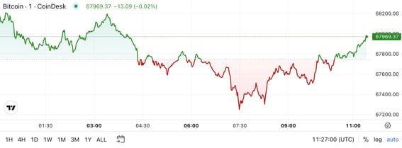 Bitcoin在欧洲早盘交易期间在67500-67900美元之间波动,此前曾一度跌破68000美元。在过去24小时内,比特币的涨幅超过1.2%,表现优于其他主要代币,这些代币的涨幅较为温和。ETH和SOL上涨约0.75%,而DOGE上涨近1%。根据Crypto 20指数,更广泛的数字资产市场上涨幅略低于0.8%。根据Crypto指数数据,比特币看来…