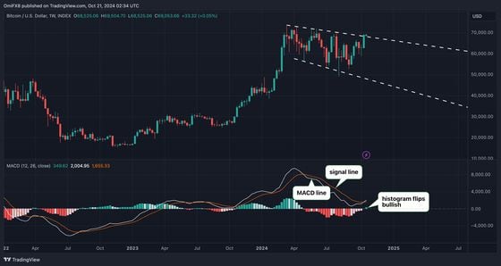 近日,一项广受关注的动量指标自4月以来首次出现了看涨信号。这一类似的看涨转势在2023年末的反弹和2022年末的暴跌结束时也曾出现过。比特币(BTC)的一个指标在9月初警告卖方耗尽后出现了看涨信号,为其突破7万美元提供了支撑。根据图表平台TradingView的数据,移动平均收敛散度(MACD)直方图指标在周线图上自4月以来首次出现了正面信号,表明…